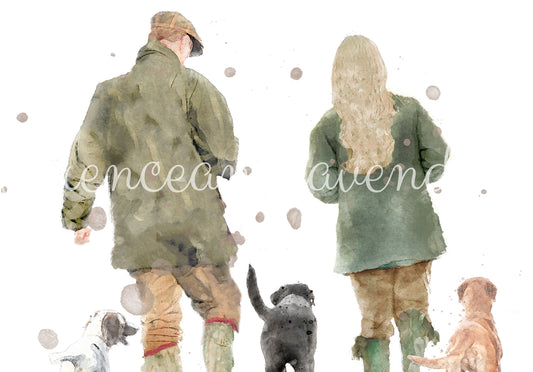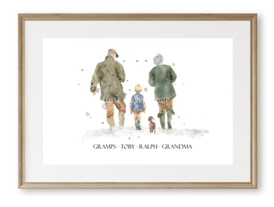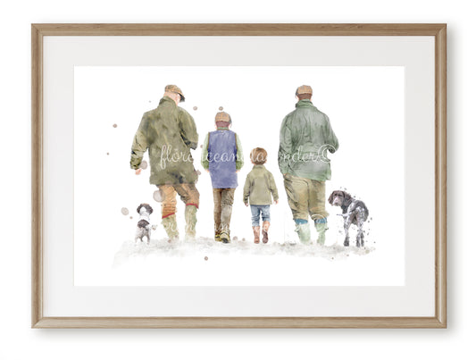 Personalised 'Country Walks' - Family Print - TWO MEN VERSION