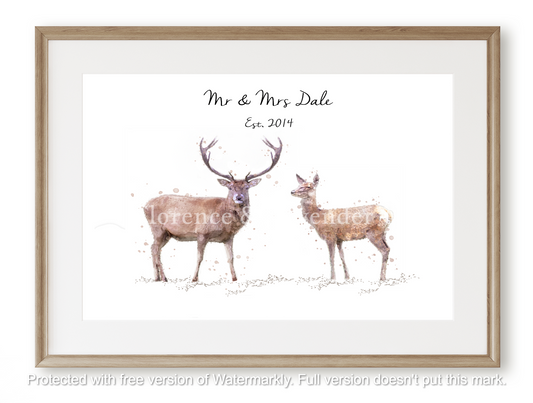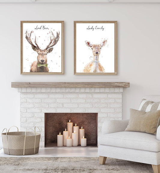 Personalised 'Lord & Lady' Stag & Doe Prints
